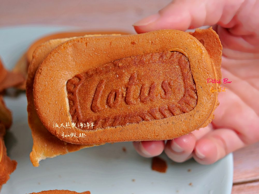雞蛋糕底層巧妙嵌進一片Lotus脆餅,