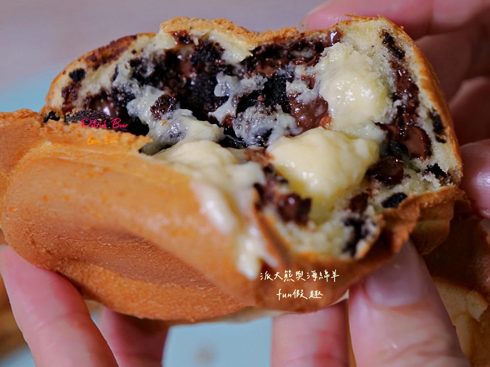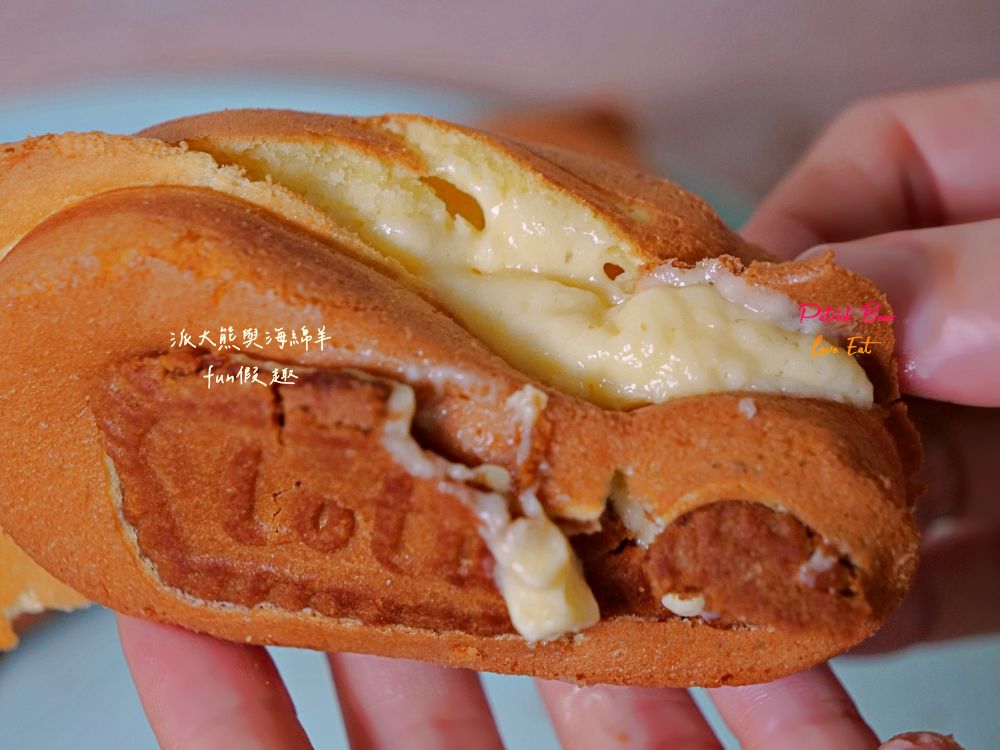 將雞蛋糕從中打開,內餡旋即宛如爆漿