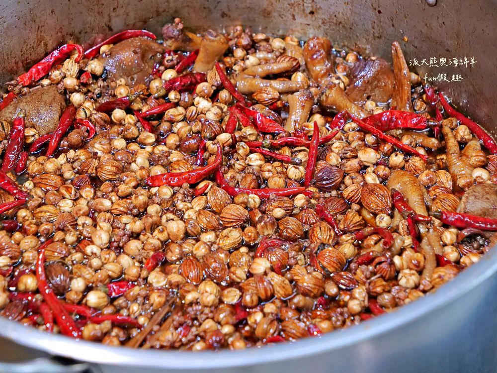 滷汁濃稠如墨,紅椒、花椒、八角、桂皮等