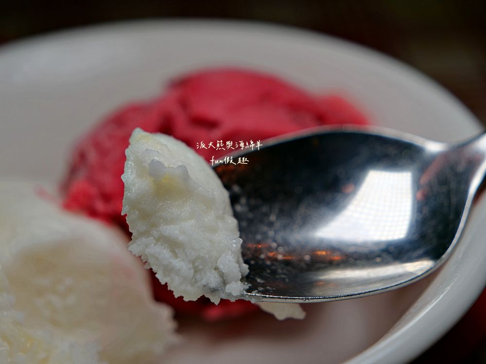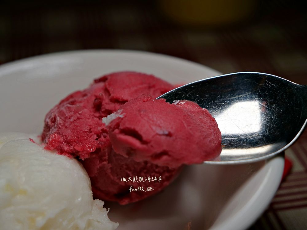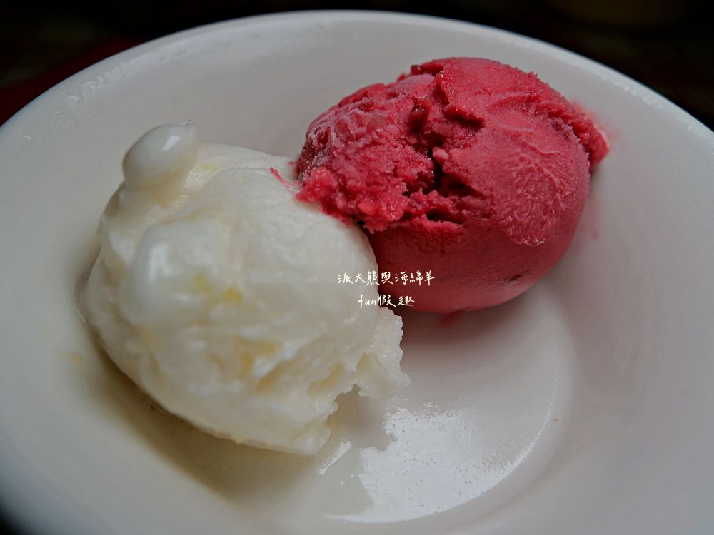 最後的餐後甜點是誘人紅白雙色冰淇淋,