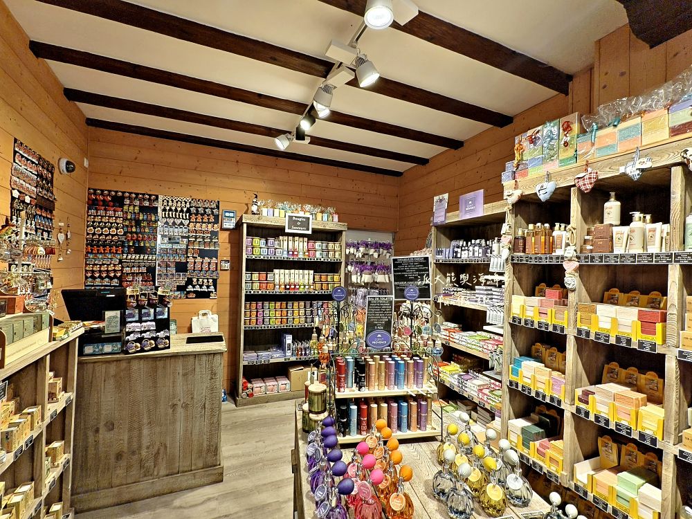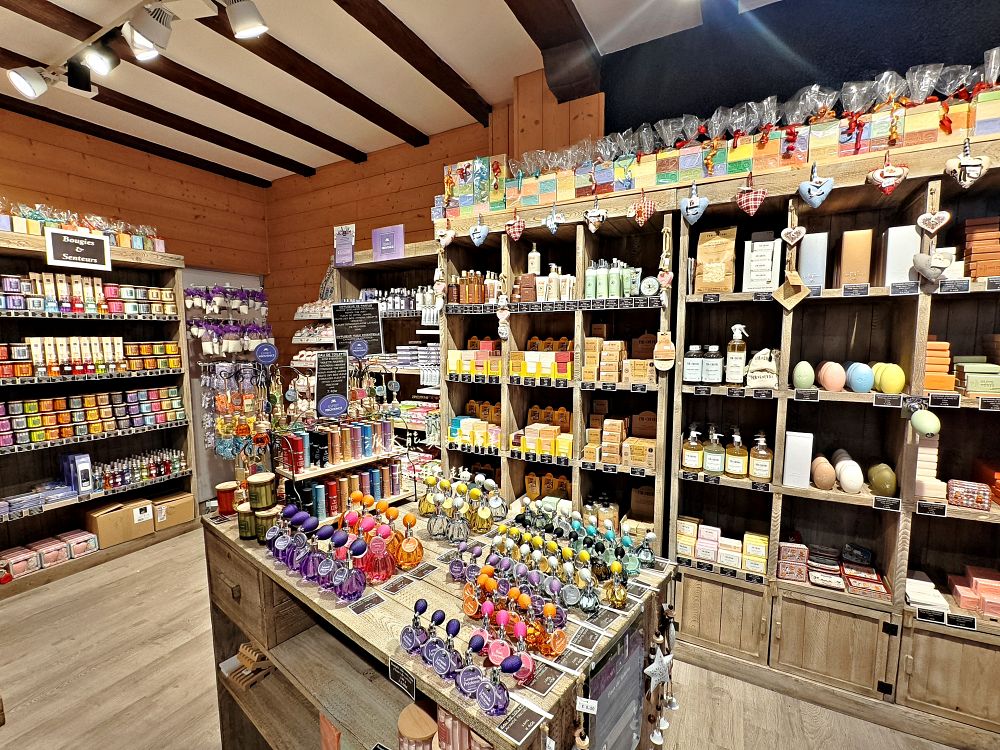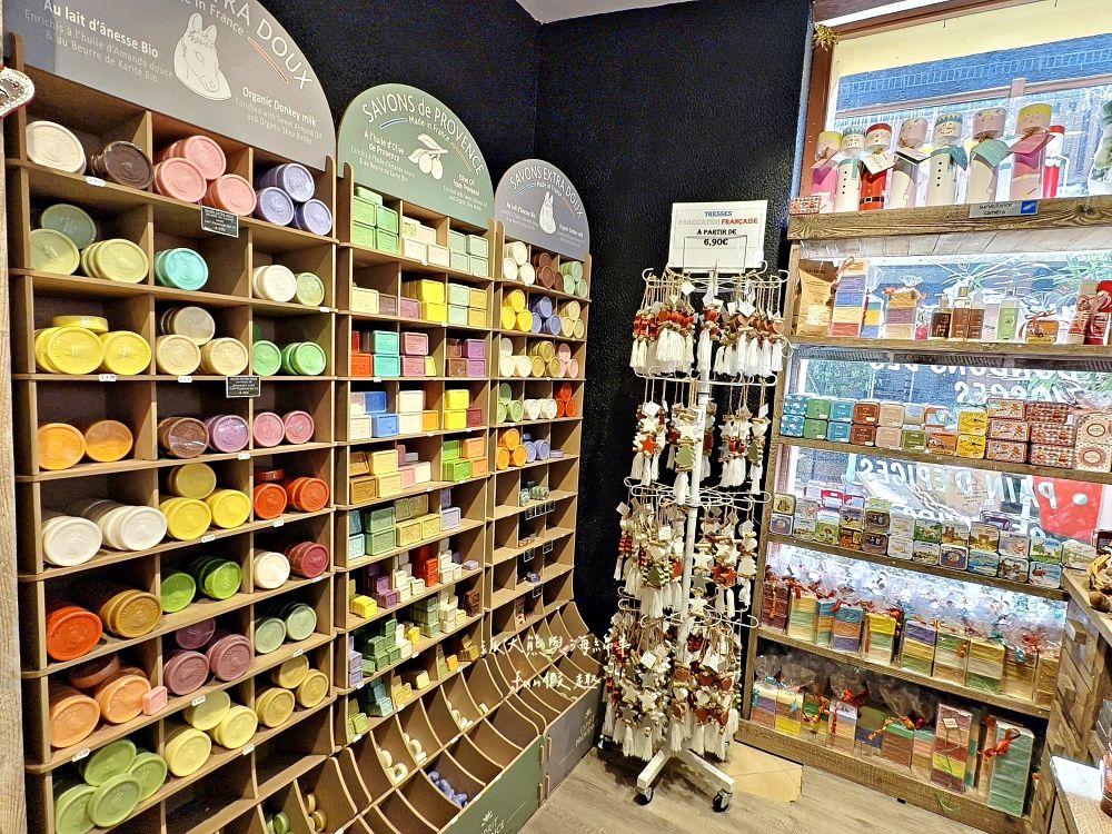 裡面隱藏共計10家店舖,有可麗餅、冰淇淋、紀念品、德式鹹麵包、茶飲、糖果、乳酪、鵝肝、行李箱、手工香皂等,種類相當多元,其中Savonnerie de Riquewihr就是其中一家,主要是販售各種手工香皂~
